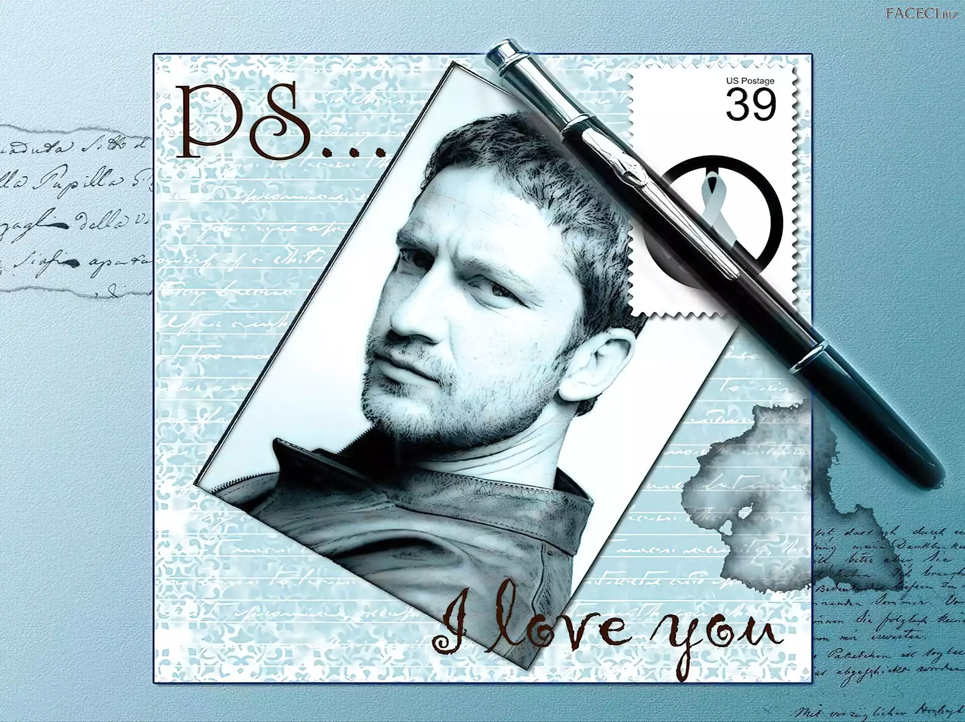 znaczek, Gerard Butler, długopis - faceci.biz